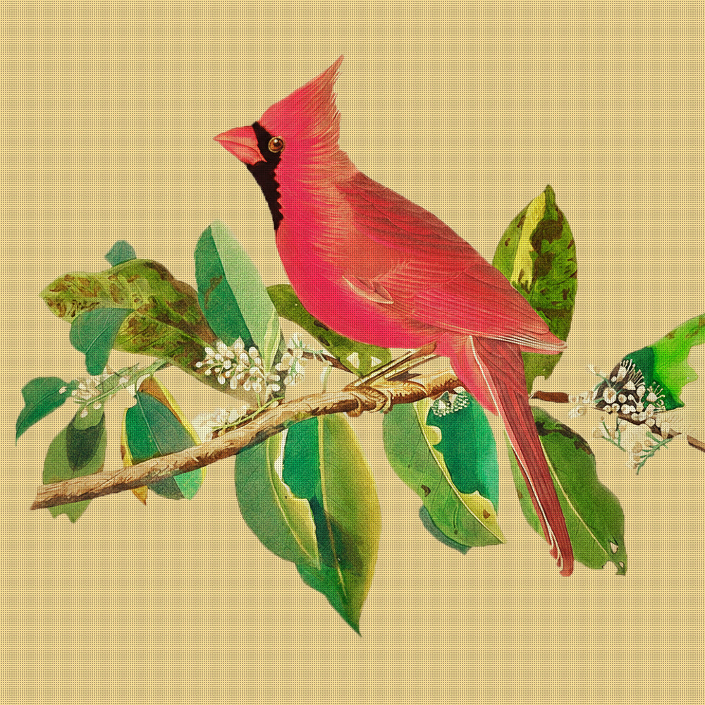 Male Cardinal Bird Illustration Gold Background by John James Audubon Counted Cross Stitch Pattern