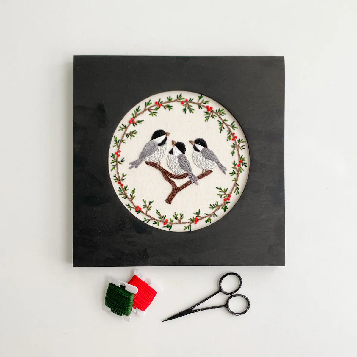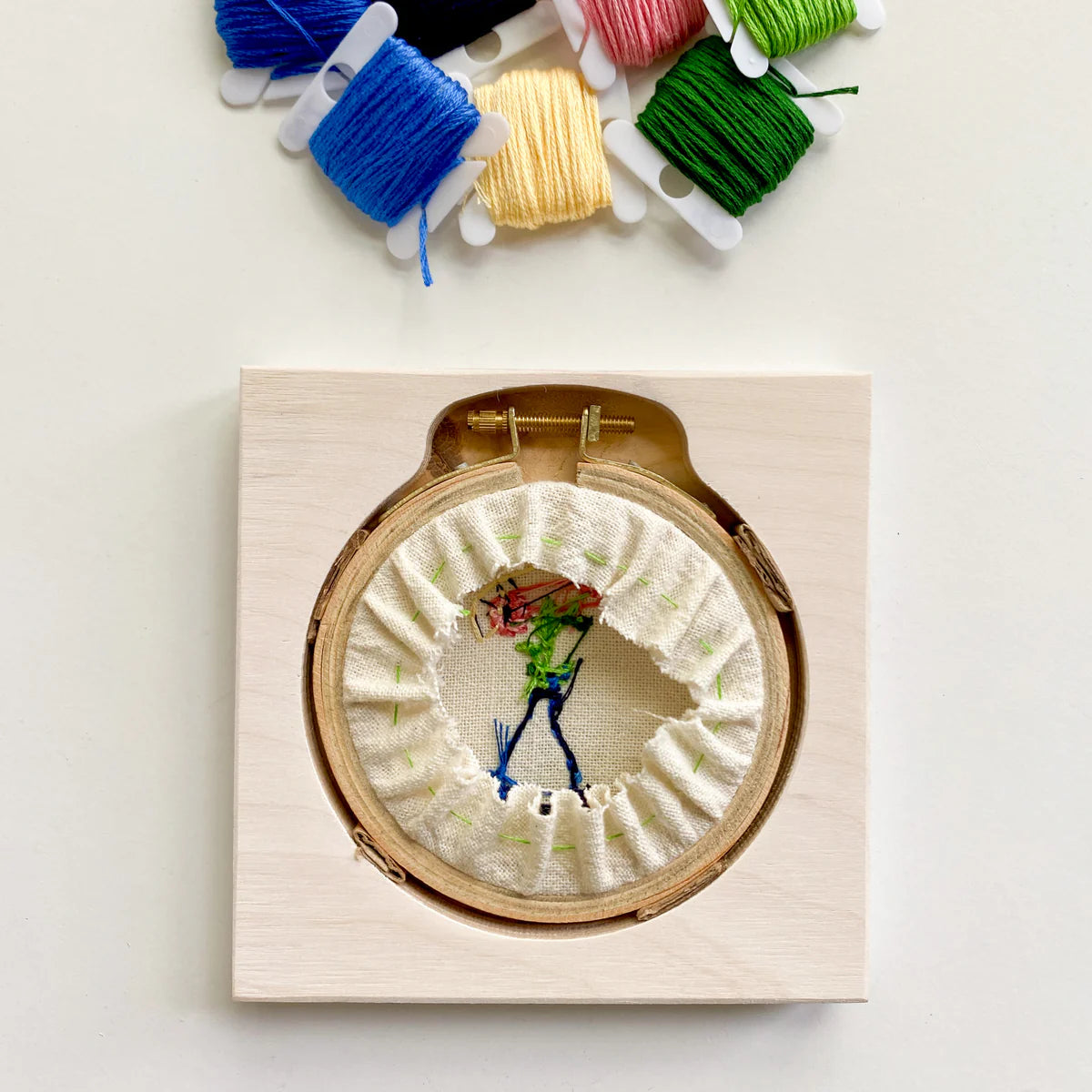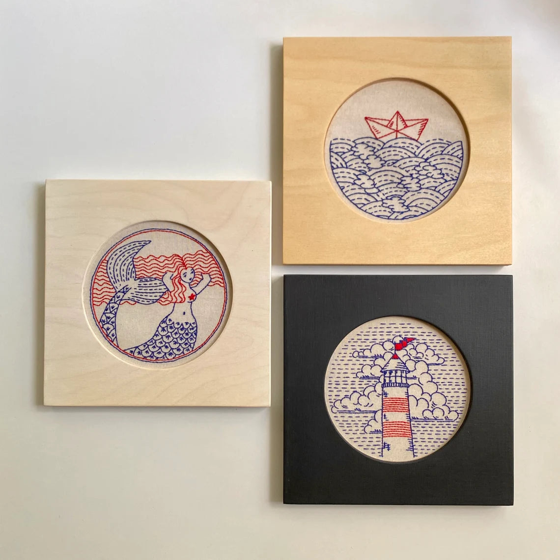 Hoopla frames are specially designed frames intended for displaying finished embroidery projects held in standard embroidery hoops. The frames are crafted from birch wood. These frames offer a polished and professional way to showcase needlework, transforming it from a work-in-progress into a piece of wall art. Hoopla Frames are designed to easily accommodate most common sizes of embroidery hoops, providing a clean border that enhances the visual appeal of the stitched design without damaging the fabric or requiring permanent mounting. These frames are very popular among stitchers for their simplicity and ability to elevate the presentation of their handmade creations.