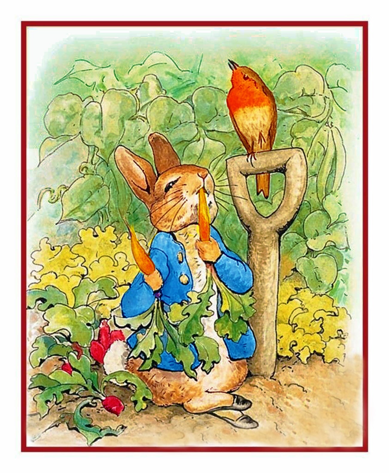 Peter Rabbit Digs in Garden inspired by Beatrix Potter Counted Cross Stitch Pattern DIGITAL DOWNLOAD