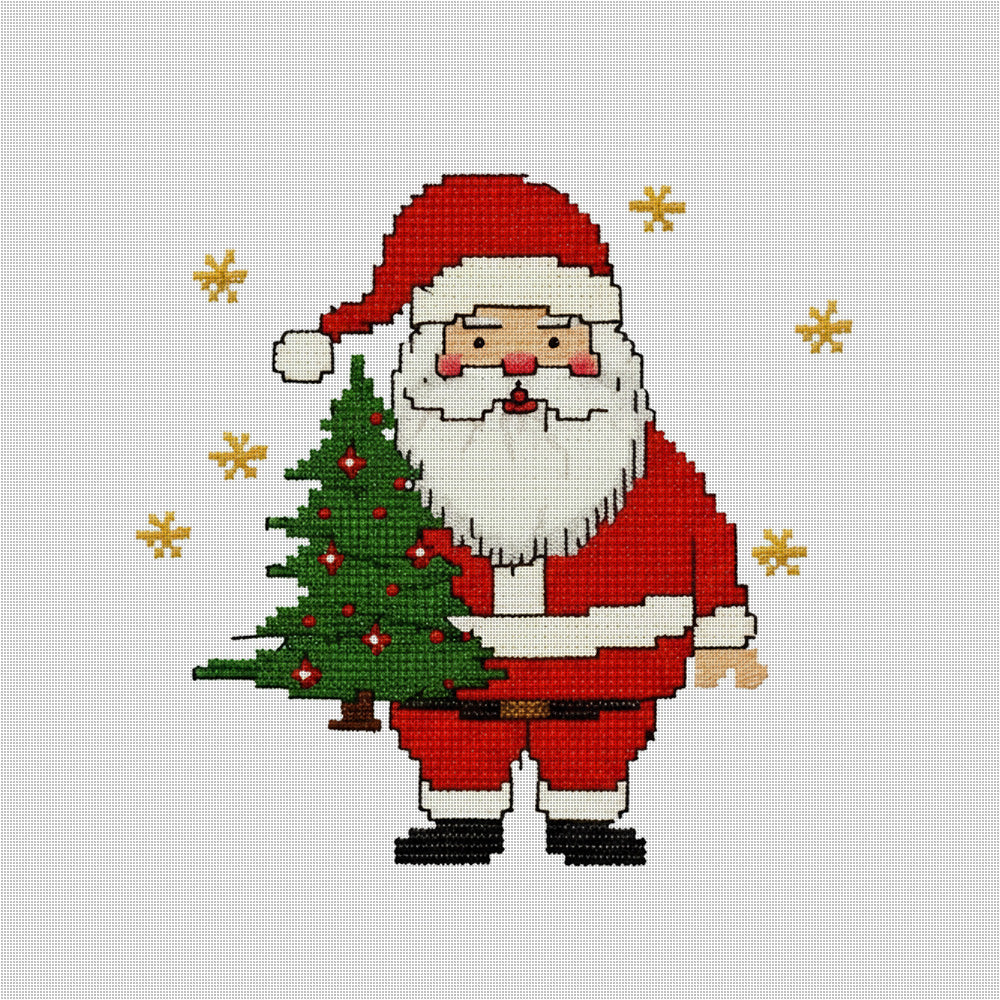 Santa Claus With A Christmas Tree Counted Cross Stitch Pattern DIGITAL DOWNLOAD