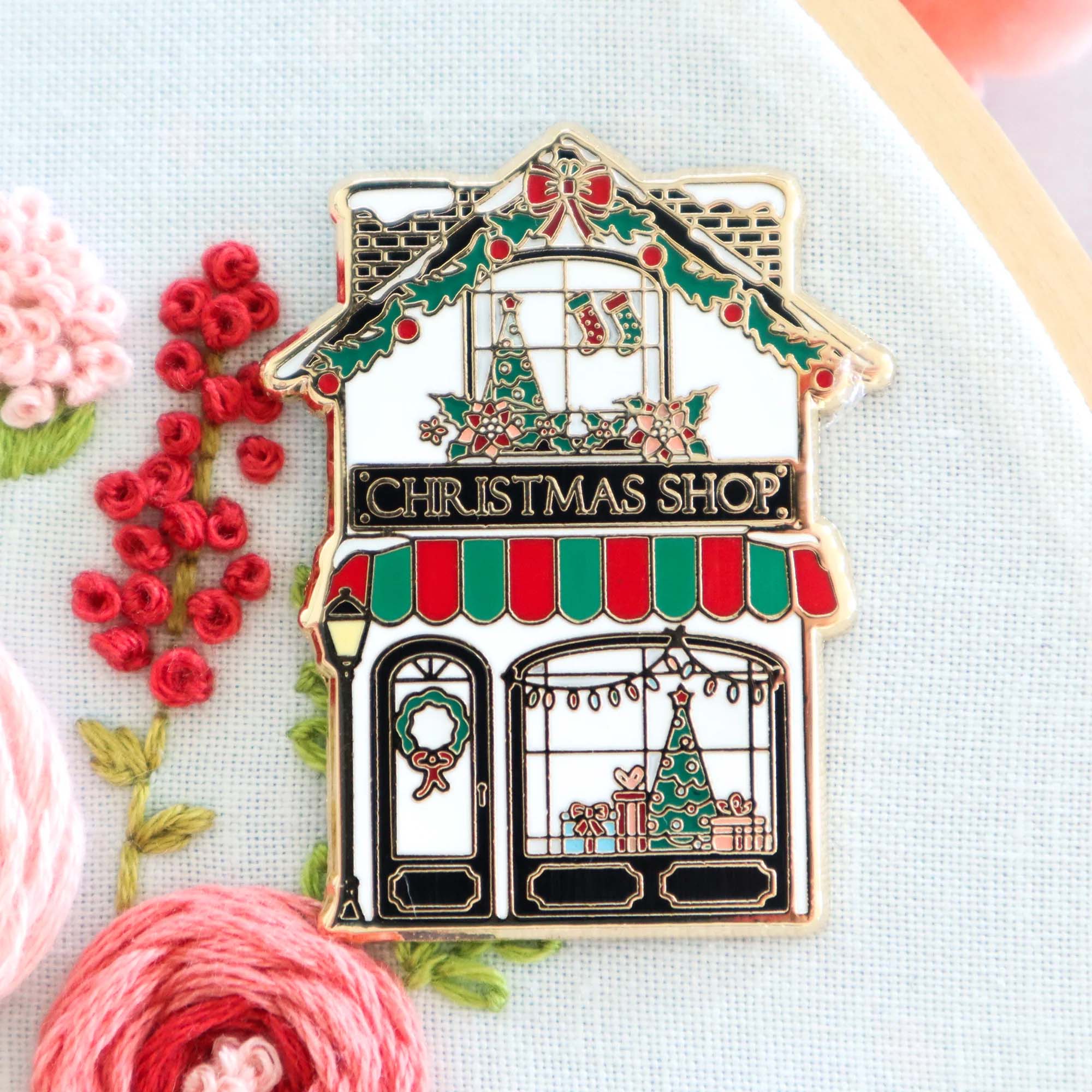 This Christmas Shop Needle Minder is such a cute way to hold your needle while you're stitching up all your Christmas projects!