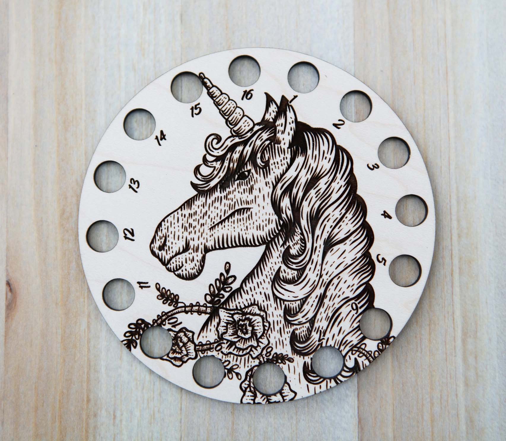 Unicorn Embroidery Floss Thread Storage Holder - Maple Wood To Store Your Cross Stitch Needlepoint- Stallion Mythical Horse Creature Unicorn embroidery floss organizer made from maple wood. This beautiful mythical stallion needlepoint thread holder has 16 circle holes to keep your yarn organized. Great for any lover of one horned horses. This thread tool measures 4 inches wide. Since each piece of wood is unique, item you receive may be slightly different from photos.