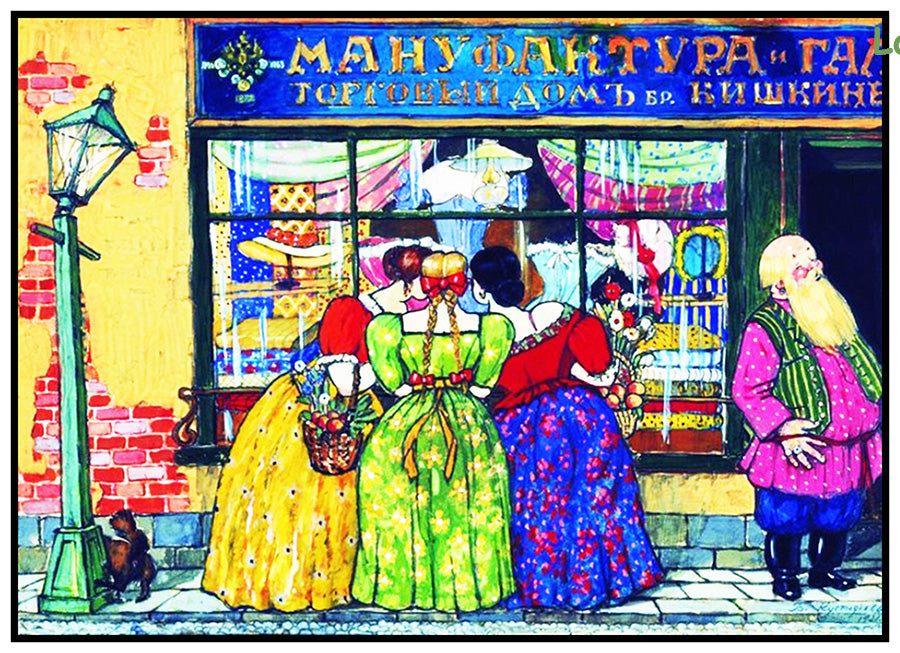 Admiring a Shop Window by Russian Artist Boris Kustodiev Counted Cross Stitch Pattern DIGITAL DOWNLOAD
