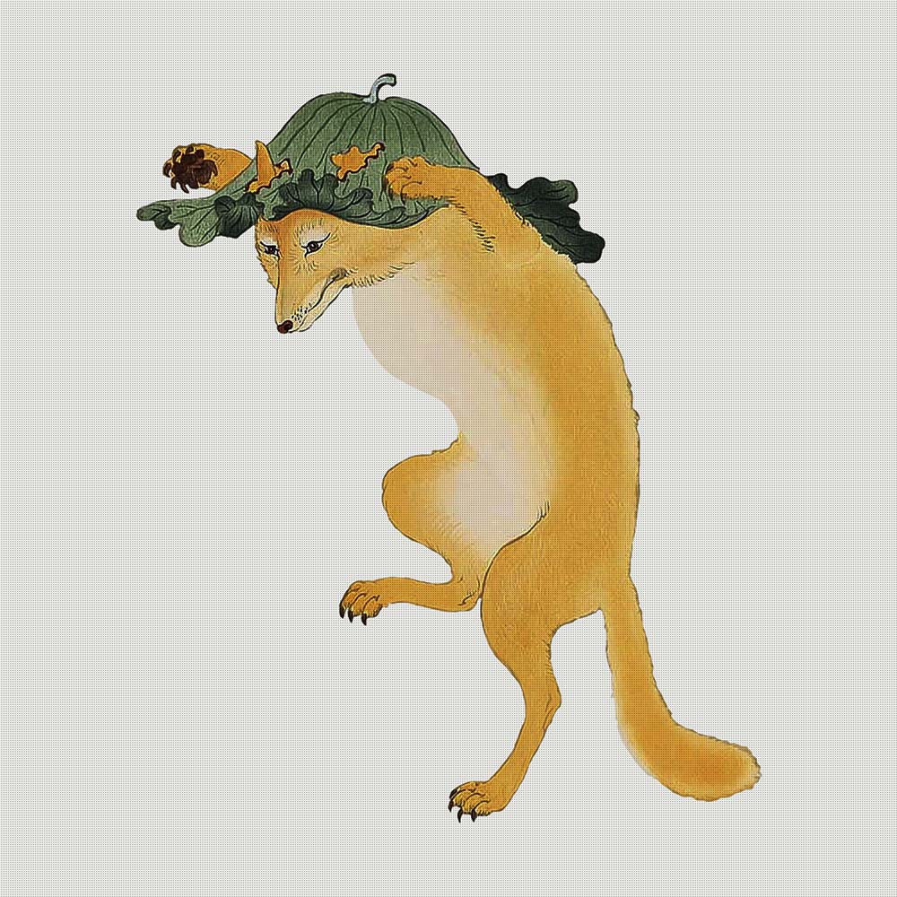 Japanese Ohara Shoson's The Dancing Fox White Background Counted Cross Stitch Pattern