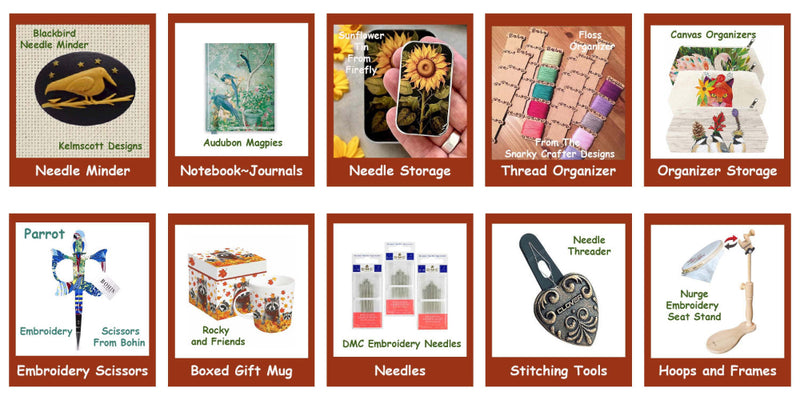 Orenco Originals is happy to email you a supply list detailing the DMC Floss and number of skeins needed to complete the project so you can buy or organize floss to start stitching once your pattern arrives; email us after you order.
