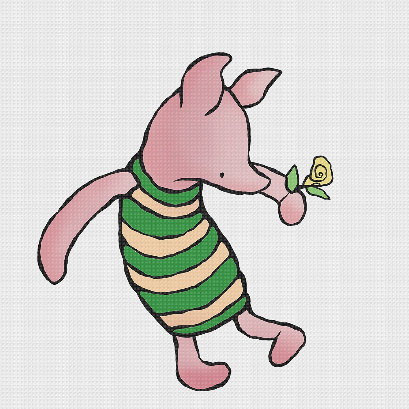 Piglet with a Flower from Winnie-The-Pooh Counted Cross Stitch Pattern