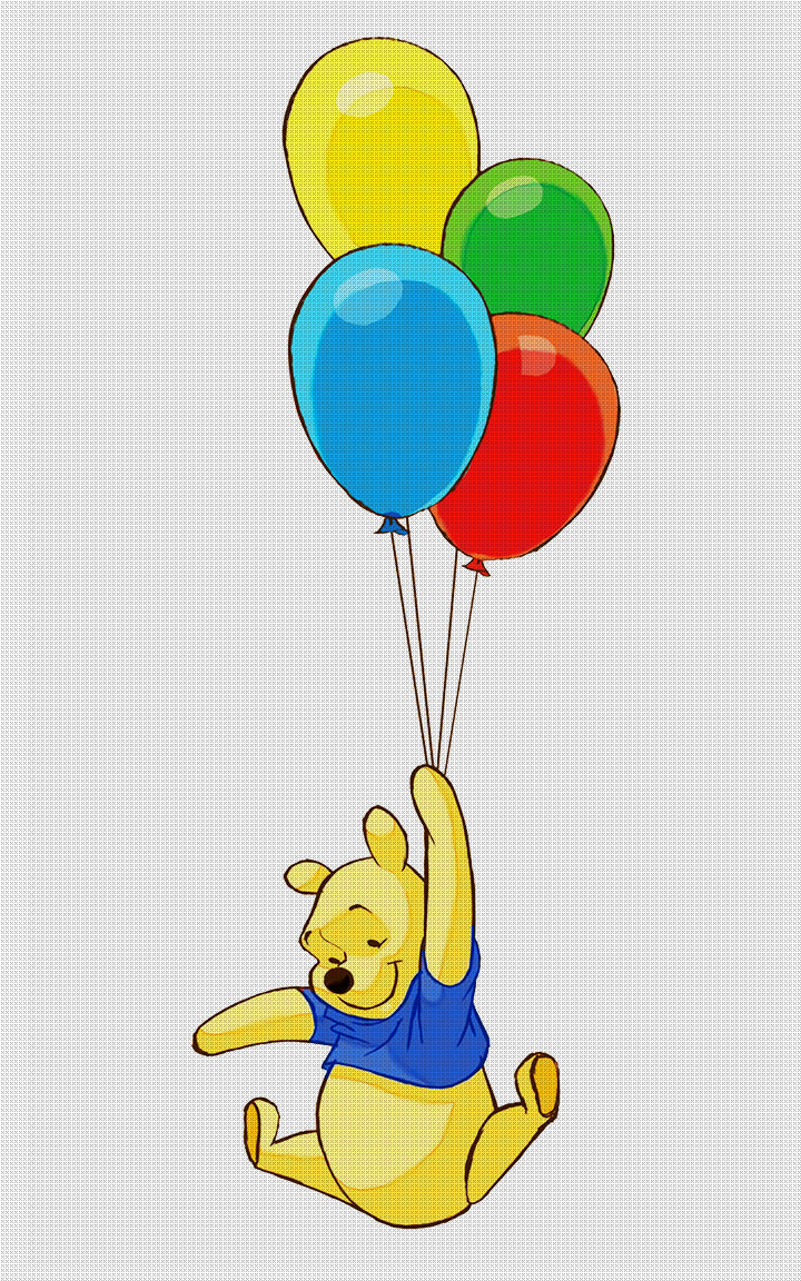 Pooh- Bear Colorful Balloon Ride Counted Cross Stitch Pattern