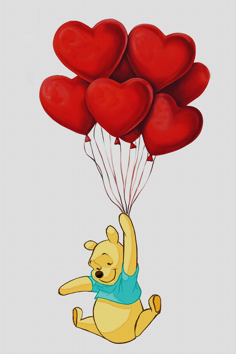 Pooh-Bear Takes a Ride On Heart Balloon Counted Cross Stitch Pattern DIGITAL DOWNLOAD