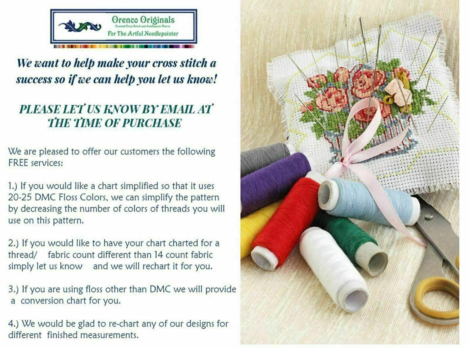 - Chart/Patterns use up to 40 colors of floss, which YOU must provide.