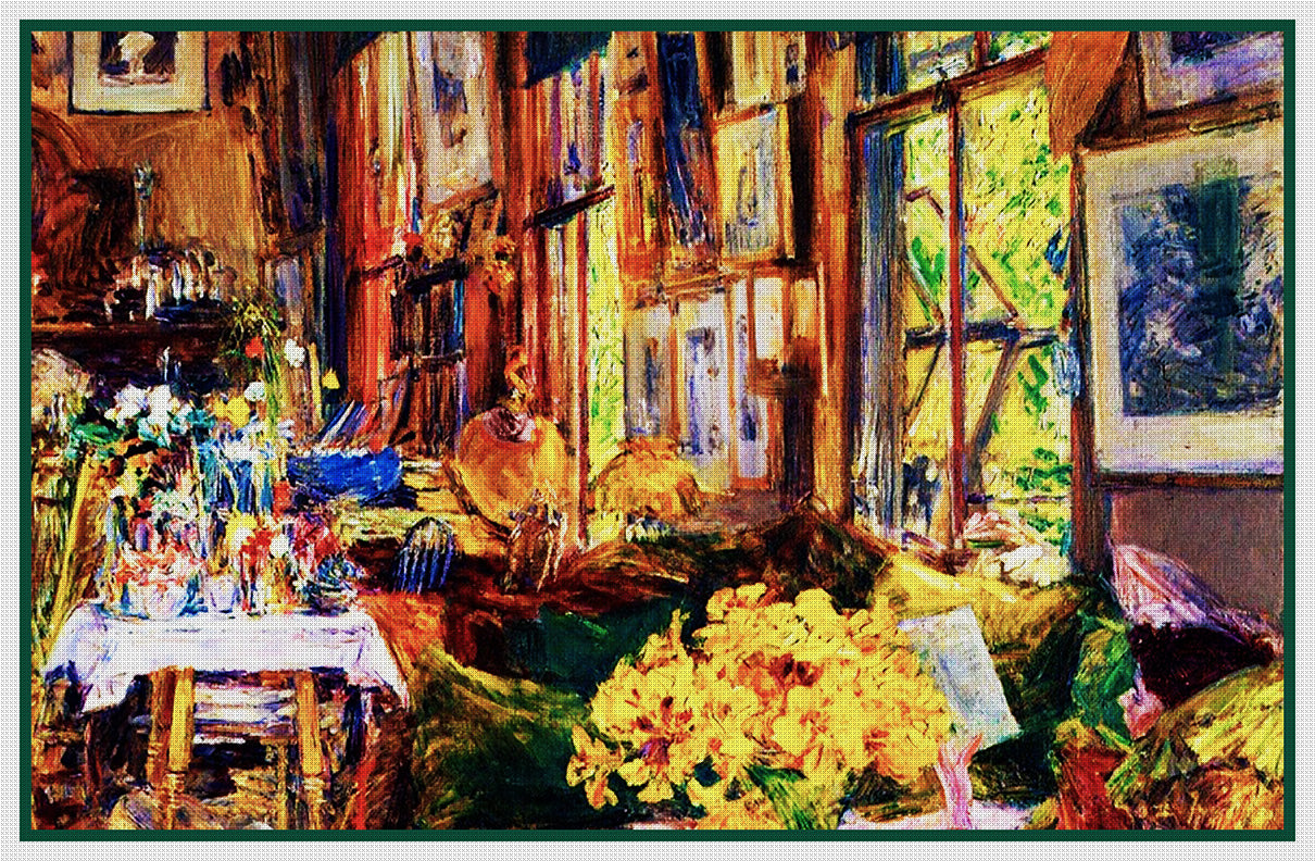 Room of Flowers by American Impressionist Painter Childe Hassam Counted Cross Stitch Pattern