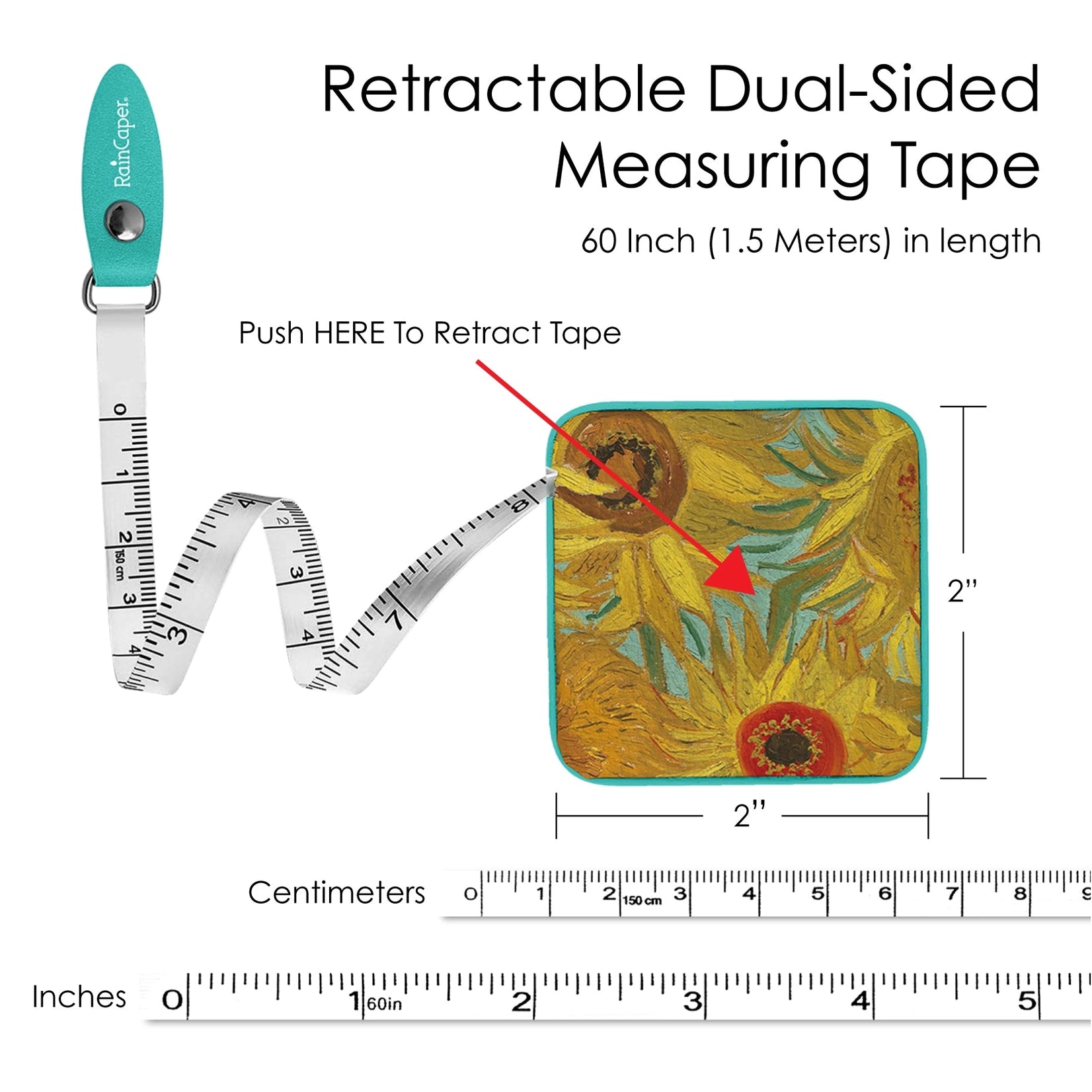 Van Gogh Sunflowers Compact Retractable Tape Measure
