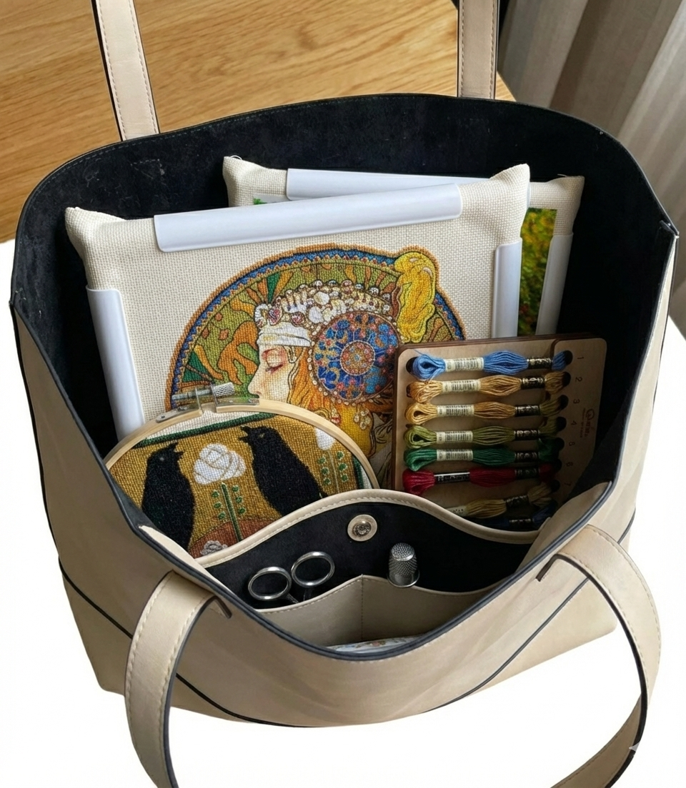 Organization Friendly: The spacious main compartment is perfect for tossing in your project bags, thread boxes, and scissors cases, keeping your WIPs (Works in Progress) safe and ready to travel.