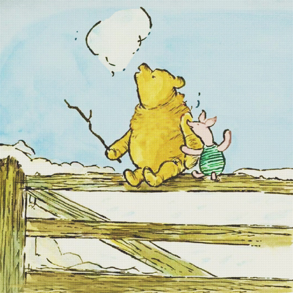 Winnie-The-Pooh and Piglet Chat about Clouds Counted Cross Stitch Pattern